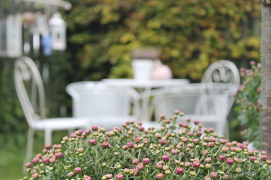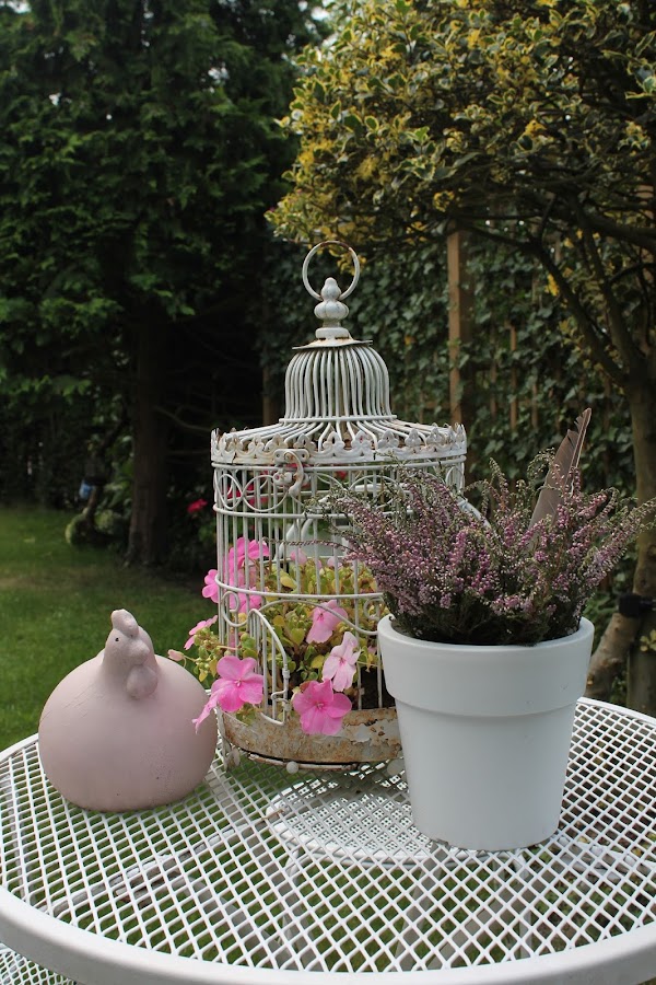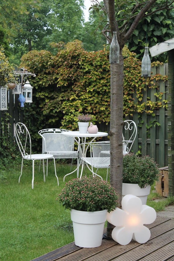 He Decidido montar un rinconcito vintage en mi jardín, me quedó super romántico y acogedor, en una tienda de segunda compré las sillitas, una mesita y farolillos, las pinté con un producto especial an ...