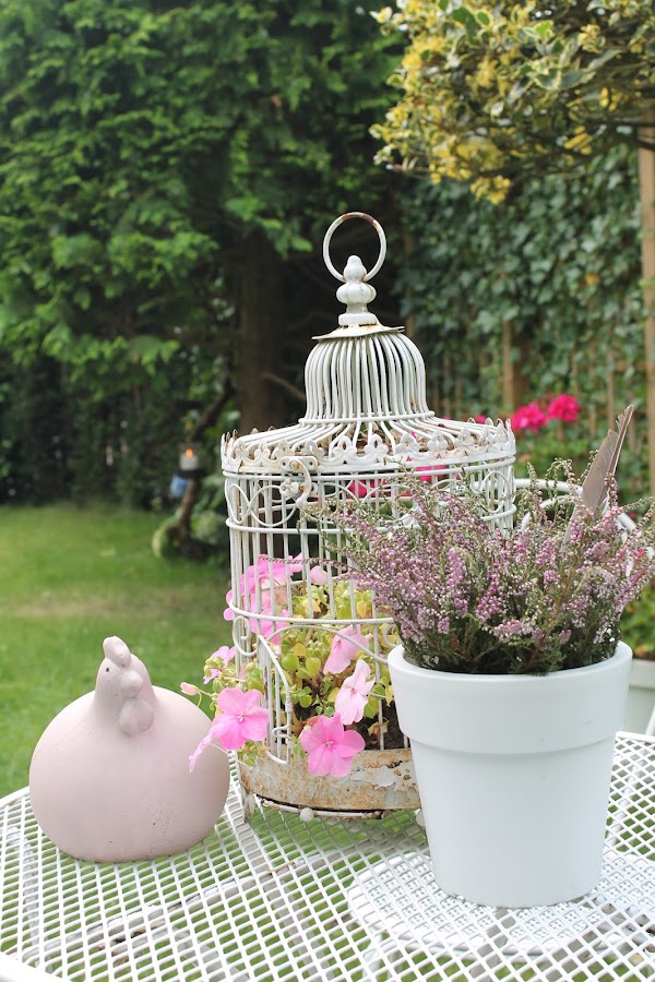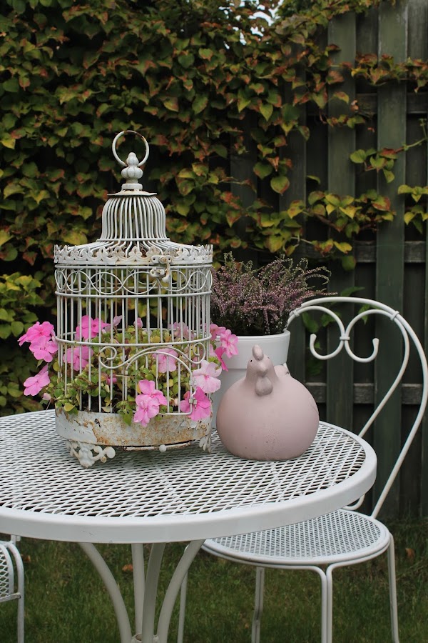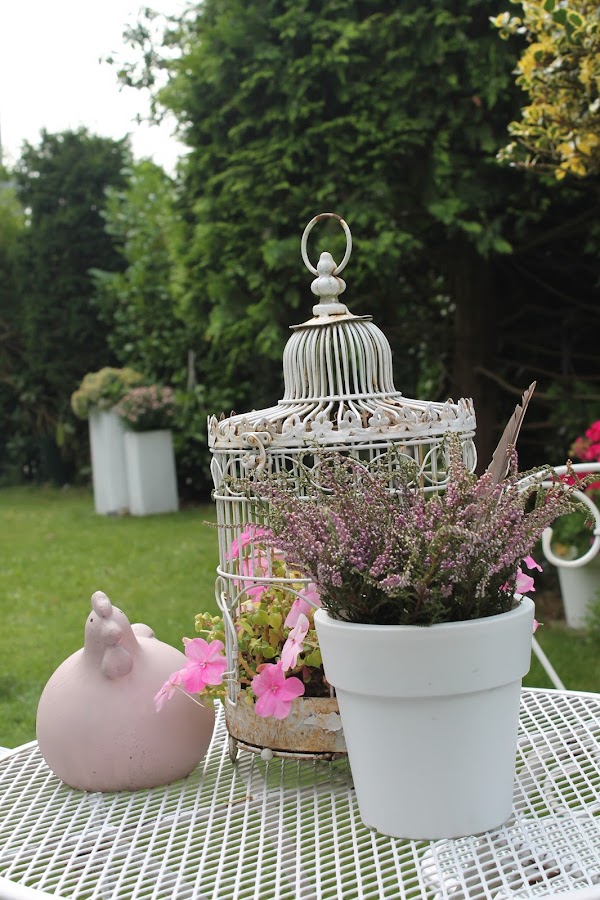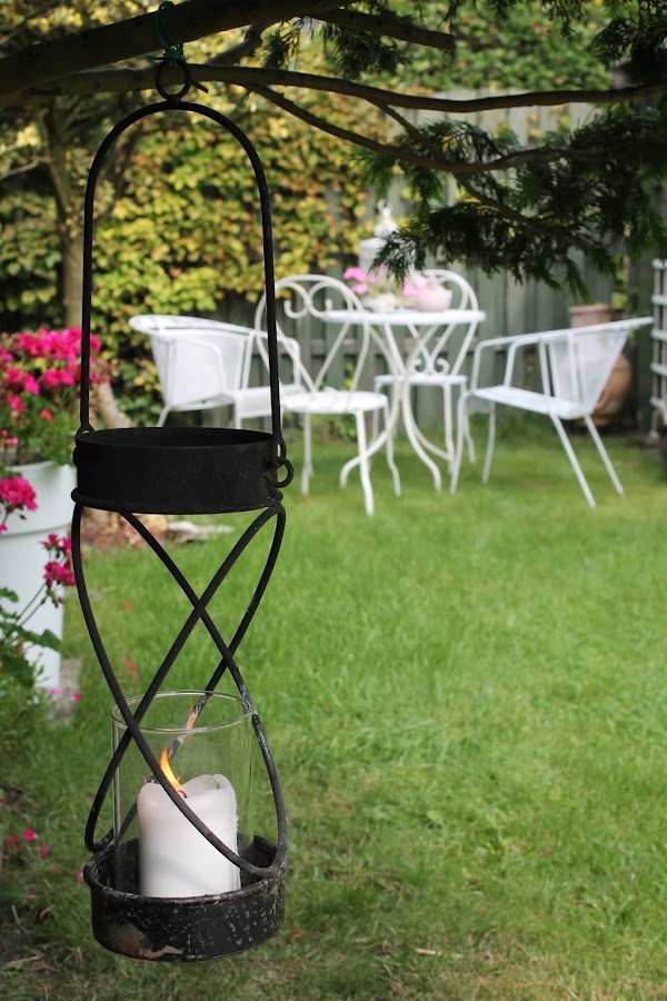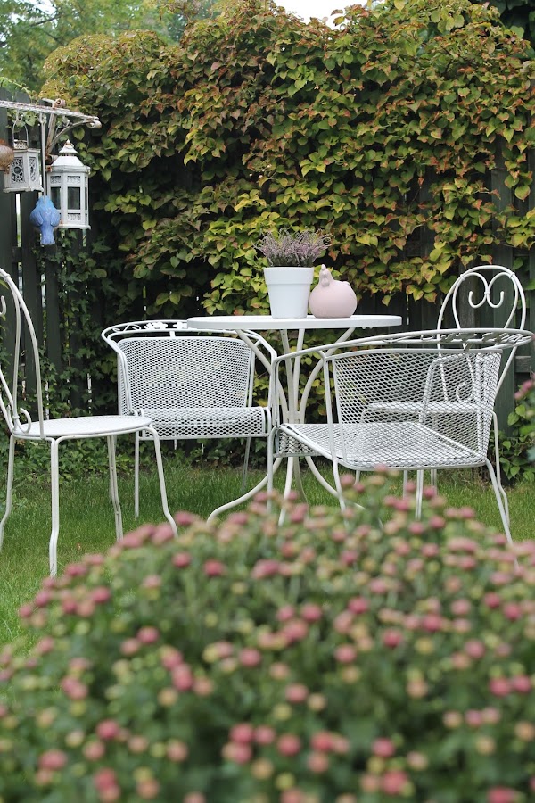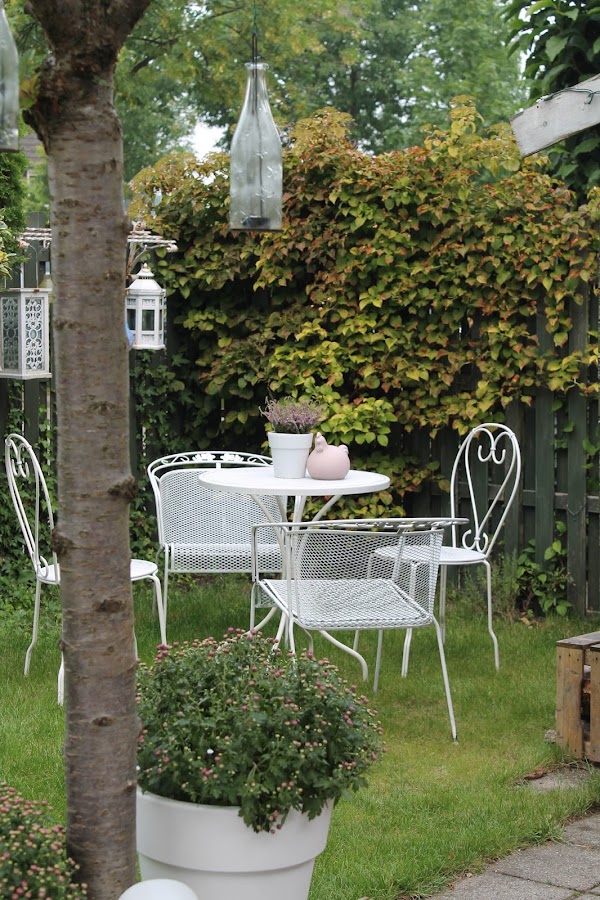 He Decidido montar un rinconcito vintage en mi jardín, me quedó super romántico y acogedor, en una tienda de segunda compré las sillitas, una mesita y farolillos, las pinté con un producto especia ...