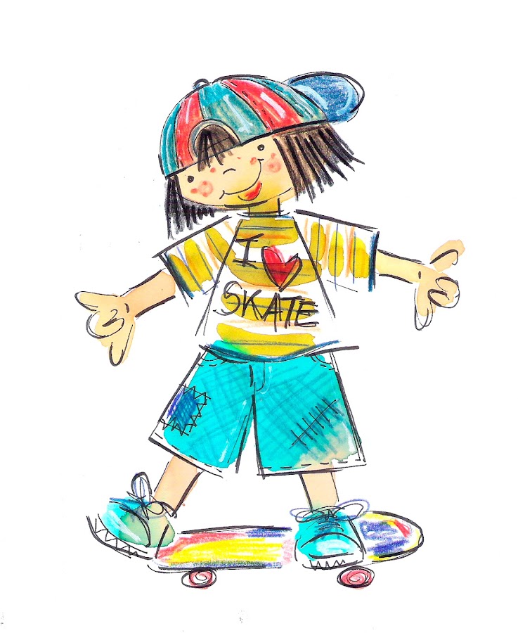 Les Antònies, cada día, nos cruzamos con un montón de skaters, por eso queremos dedicar esta ilustracióna todos los que disfrutan y sufren esta afición. Nuestro joven skater se lo pasa a las mil maravillas.