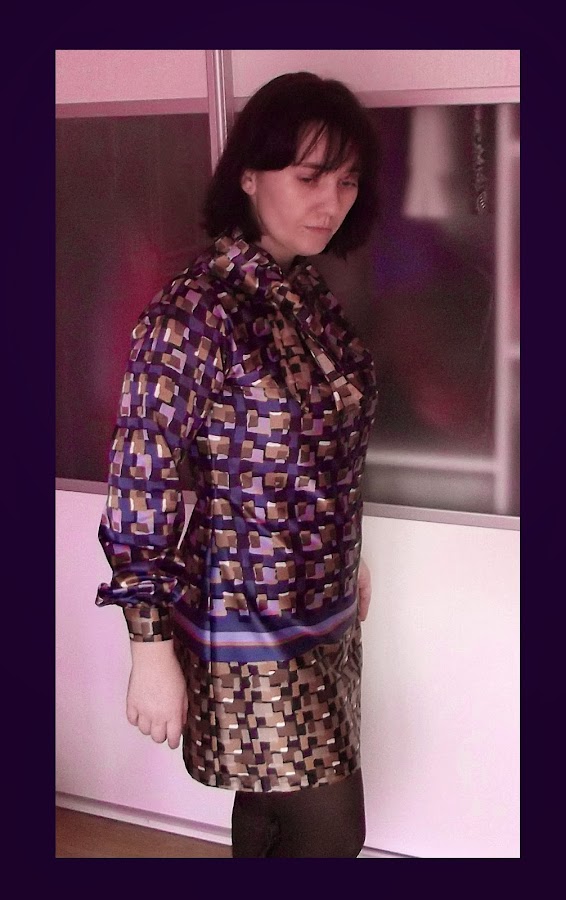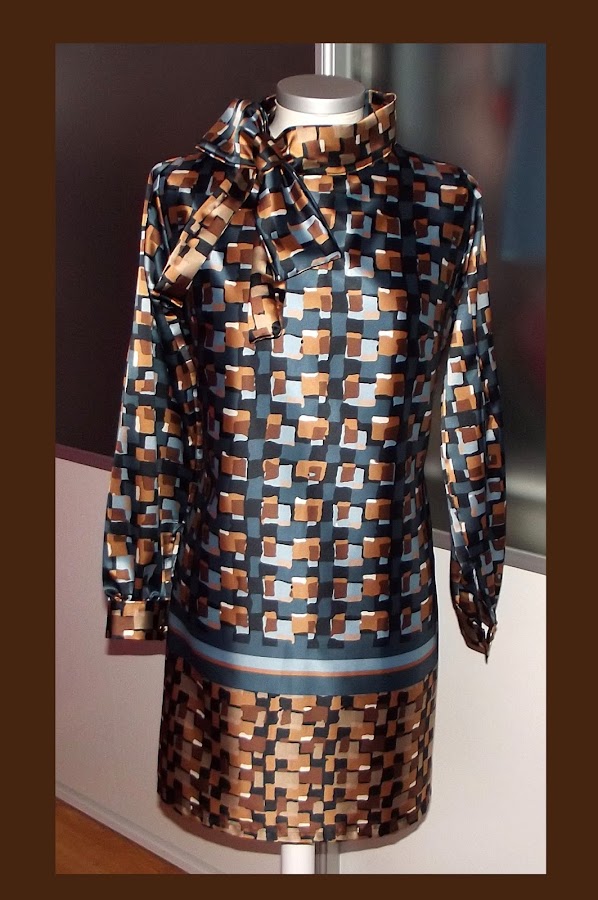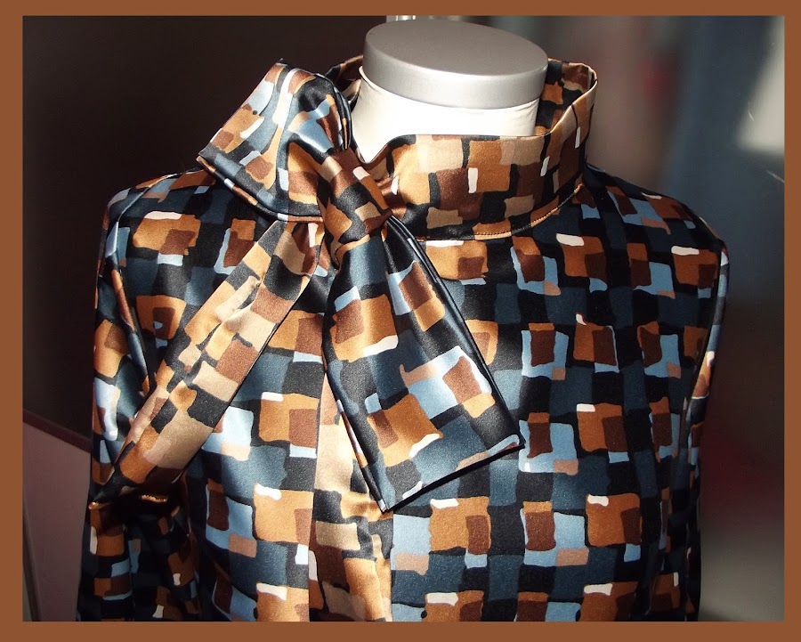 Y por ultimo el cuello, en este caso le he querido dar un aire vintage, me pareció que por el estampado era lo que pedía el modelo y elegí un cuello chimenea con un gran lazo en el costado