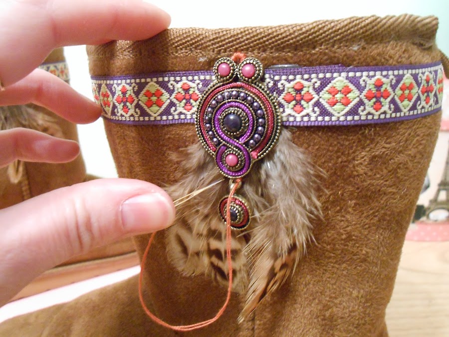 Y cosemos las arandelas del pendiente uniéndolo a la bota. Si queréis también podéis echar una gotita de silicona para fijarlo mejor.