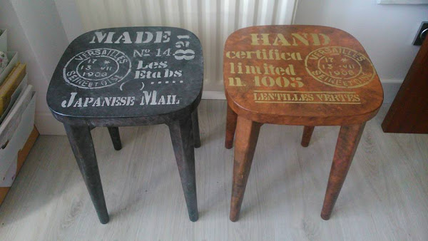 Retomando esos tuneros pendientes desde hace tiempo... Esta vez dos taburetes que mi pareja me trajo hace algún tiempo... corre peligro de contagiarse de mi síndrome de diogenes Jaja... Pero me gustó la forma que tenían y este finde he visto claro el estilo que les iba a dar... Con un toque industrial y un poquito de atención... Este es el resultado... Un estilo dos acabados... Espero que os guste