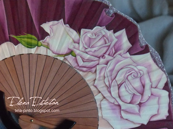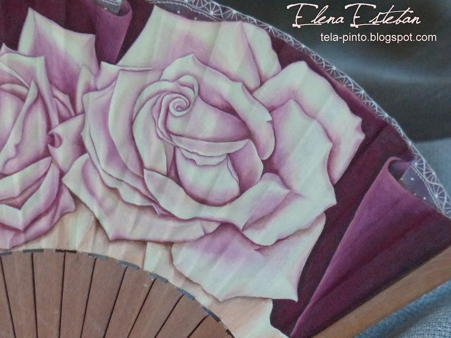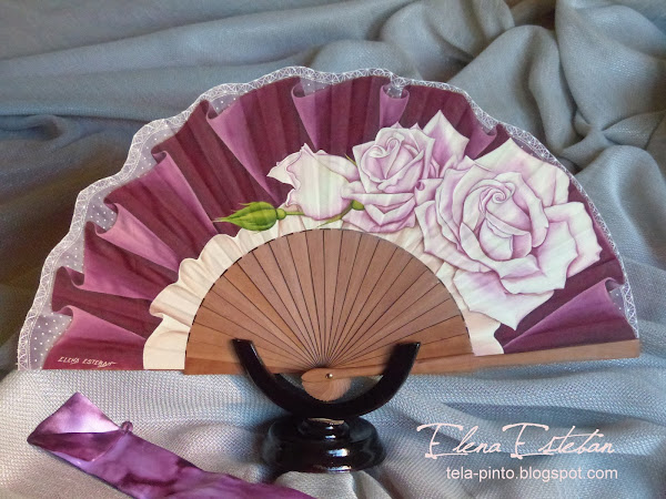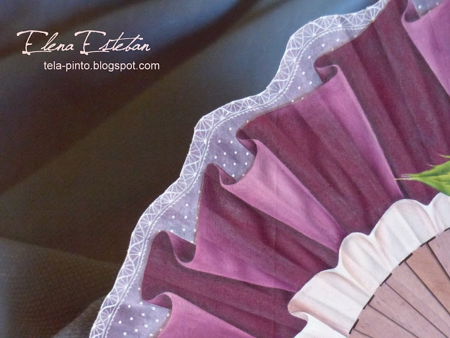 Abanico en peral pulido, pais de algodón pintado a mano.