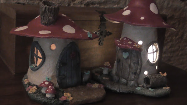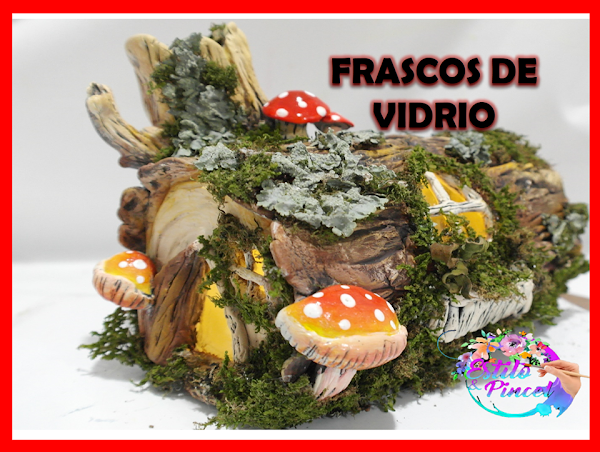 Este trabajo necesita muy poquitos materiales, unos frascos, pasta de modelar y pinturas. Me ha encantado hacerlos, he tenido que echar el freno o me llenaba el jardín de setas jajajaja.
