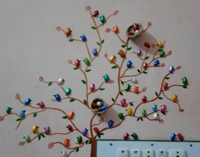 Hermosos pajaritos y flores hechos con cascaras de pistaches