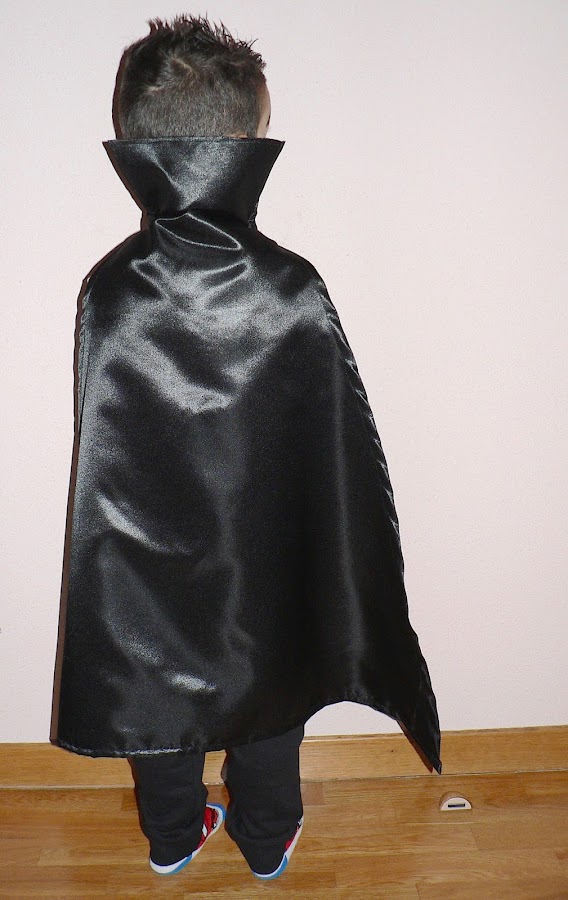 Hoy quiero enseñaros el disfraz tan chulo que le hecho para mi mayor. Ayer tenían que ir disfrazados al cole para celebrar el Samain, la "versión gallega" de halloween. Dejé que él mismo escogiera su disfraz y cuál fue el resultado? Pues me pidió que le hiciera una manga de murciélago y otra de vampiro. Al final se decidió por vampiro y allí que me lancé.