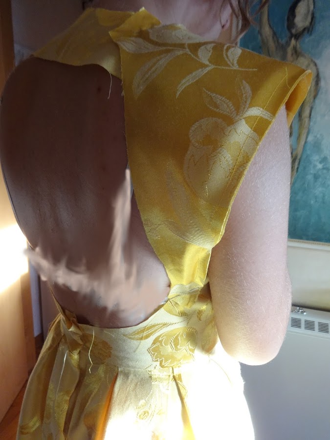 Ella quería un vestido amarillo , y tenía guardada esta tela desde hacía un año para ello ,