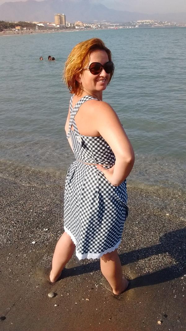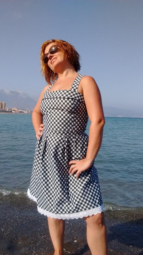 Como véis, es un vestido muy fresco y favorecerdor, que confeccioné con un vichy de algodón blanco y negro, con un poco de elastán. Los tirantes cruzados con botones grandes, la espalda abierta y el cuerpo ajustado hace que el modelo sea único.