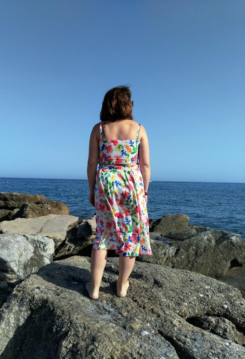 La primera versión del vestido, que podéis ver en la foto, la hice ya hace un par de años. Es un patrón que salió en el Burda Easy del verano de 2016 y que, a simple vista, no parecía tener el encanto que tiene en realidad.