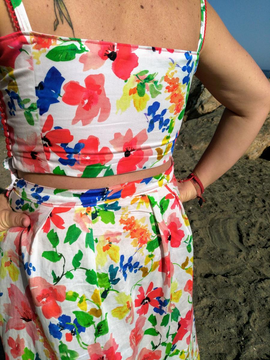 Para esta nueva versión he utilizado una tela totalmente diuferente, un tejido estampado de batista satinada que compré en la tienda on line Tejidos de Moda. Para mi la batista es una tela perfecta para el verano, es una tela fresca, fina y muy suave, que con el satinado y el estampado es aún más perfecta.