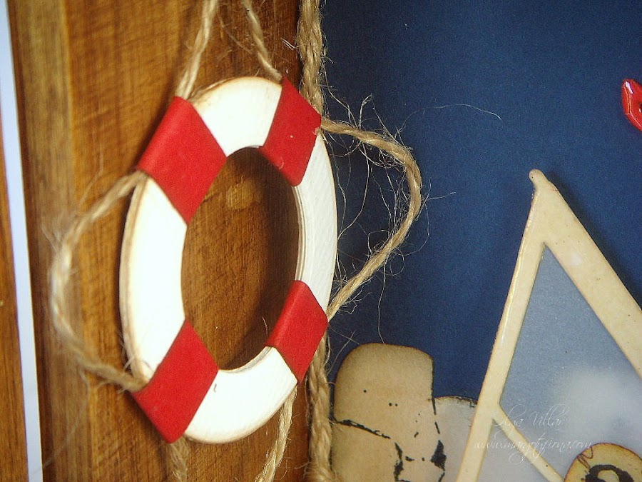 El salvavidas, bien a mano por si acaso... hecho en papel como falso chipboard y cuerda.