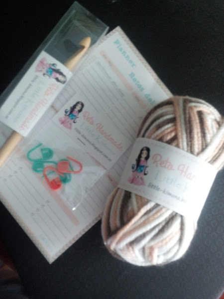Todo me ha encantado, la lana ya estoy pensando qué puedo hacer con ella a la mayor brevedad, el organizador me viene de perlas para organizarme porque soy un poco desastre, los marcadores que no tenía y utilizaba un clip de colores me vienen geniales y por último el ganchillo personalizado que aunque no se ve lleva el nombre de mi blog. Muchas gracias por este detalle tan bonito, estoy muy contenta y con una sonrisa todo el día. Espero que os guste a todas tanto como a mi.