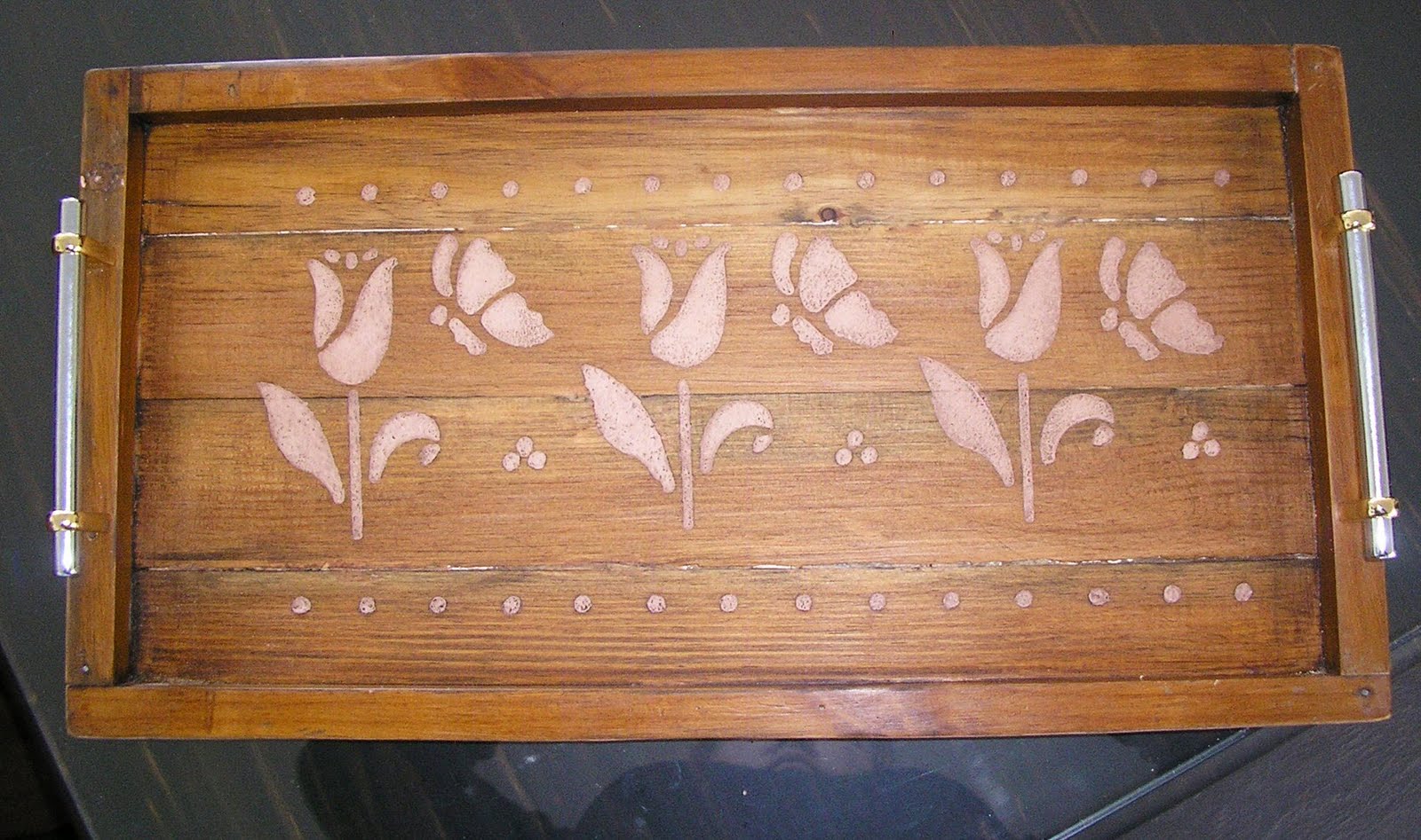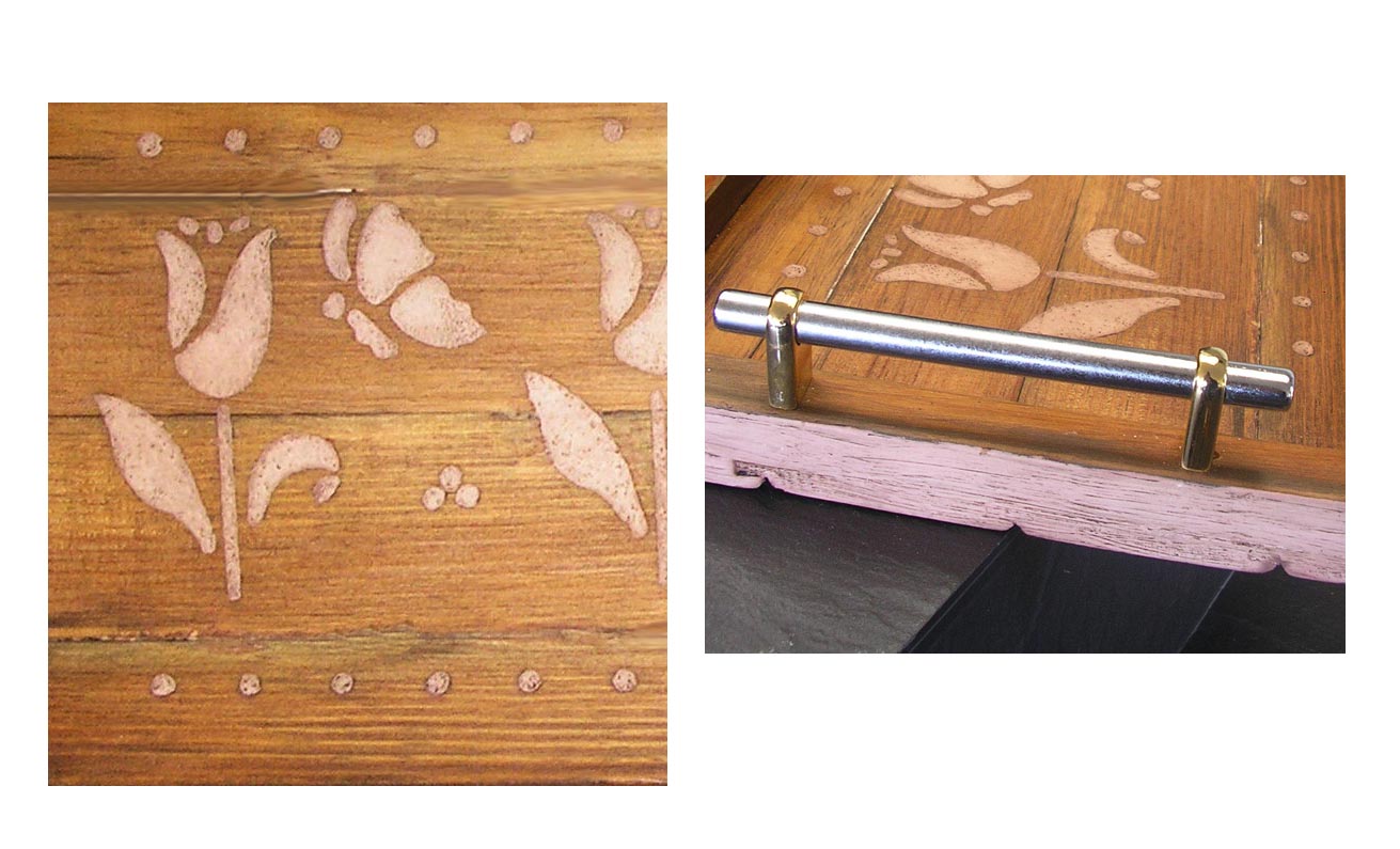 Lo cuarto: pintar con una plantilla un dibujo en el fondo y poner unas bonitas asas.