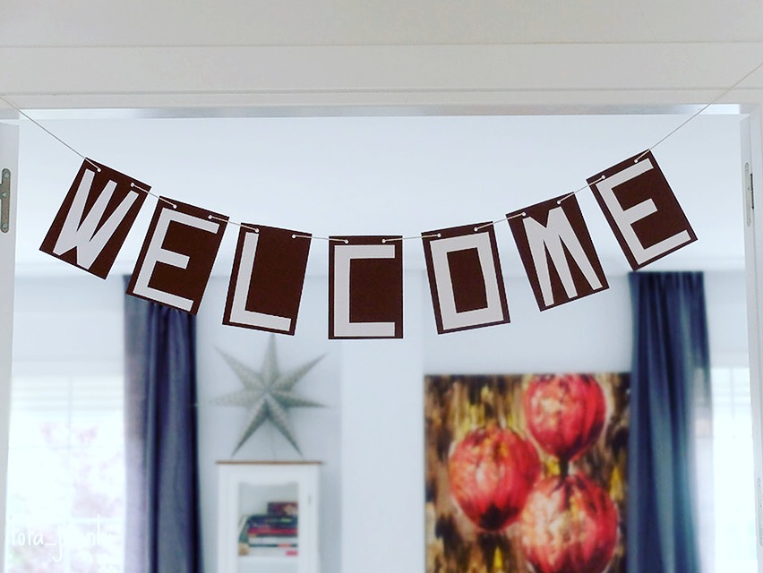 Cuando llegó el viernes, día en que regresaba Monsieur Accidents a casa, me desperté con una idea en la cabeza, tenía que darle una sorpresa. Y pensando y pensando... ¿Y si le hago un cartel de bienvenida? Buscando por internet vi unas guirnaldas con letras muy pero que muy chulas.