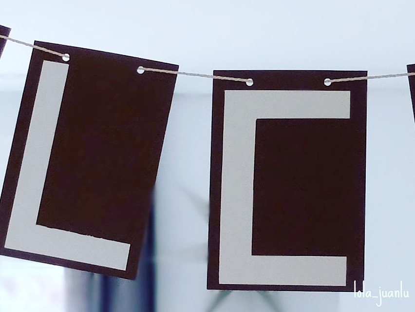 Les hice dos agujeros a cada una de ellas y pasé el cordón. Coloqué cada letra dejando una separación entre ellas para que quedara más bonito.