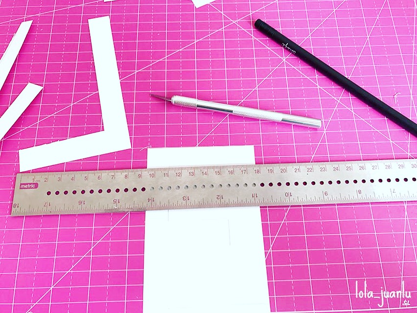 Y luego recortar con el cúter de precisión y la ayuda de la regla metálica.