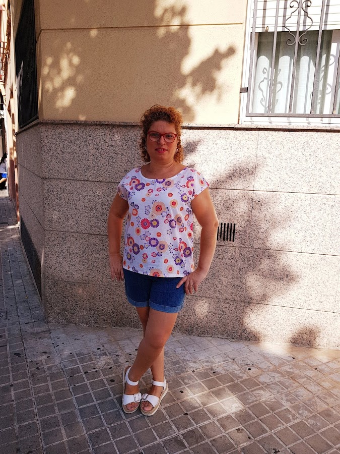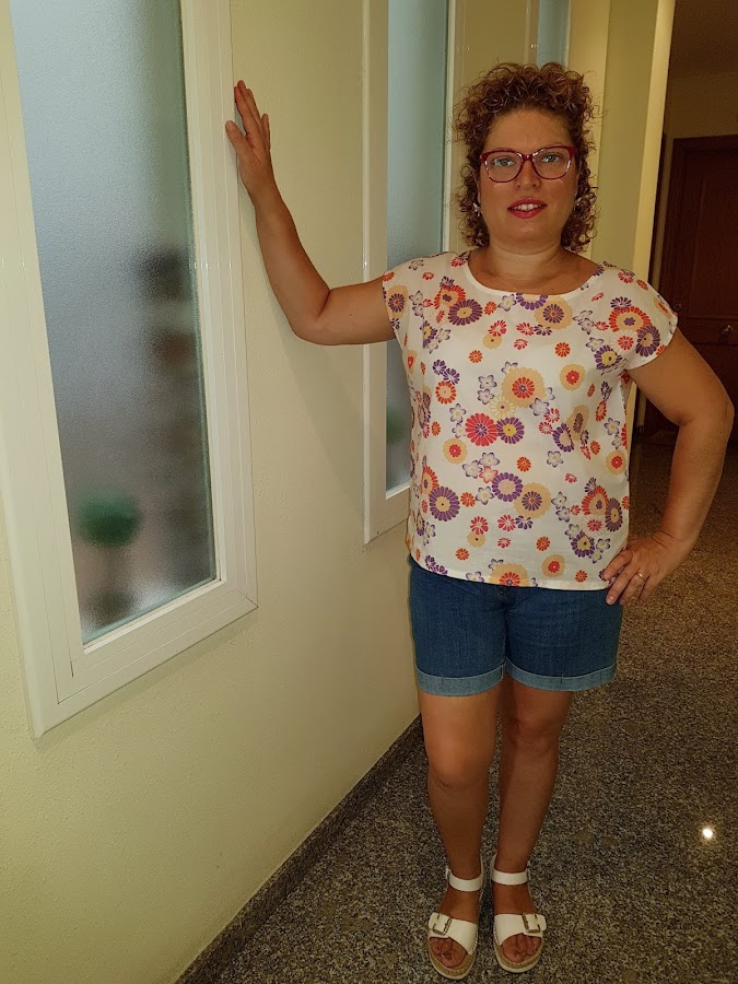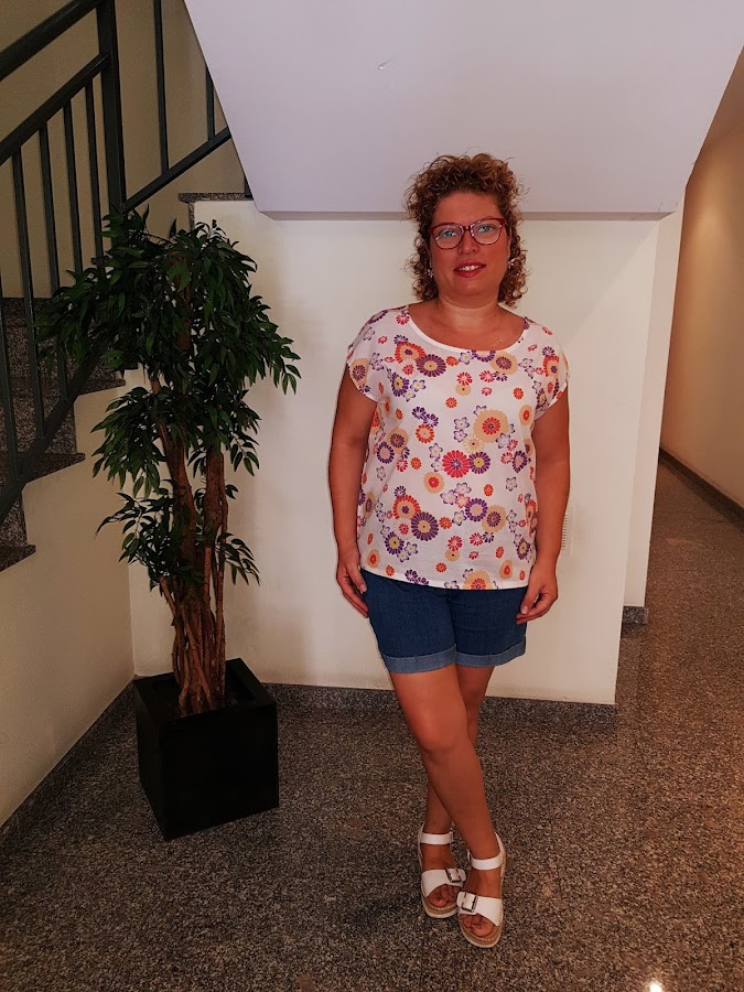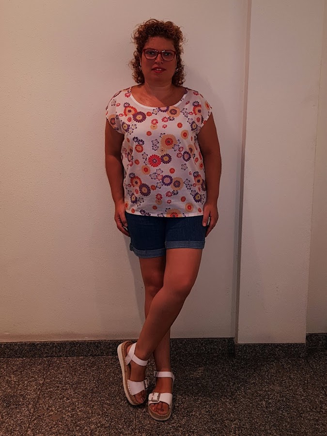 Esta blusita se ha convertido en un basico en mi armario , combina muy bien con todo , por los colores de las flores y siempre queda bien.