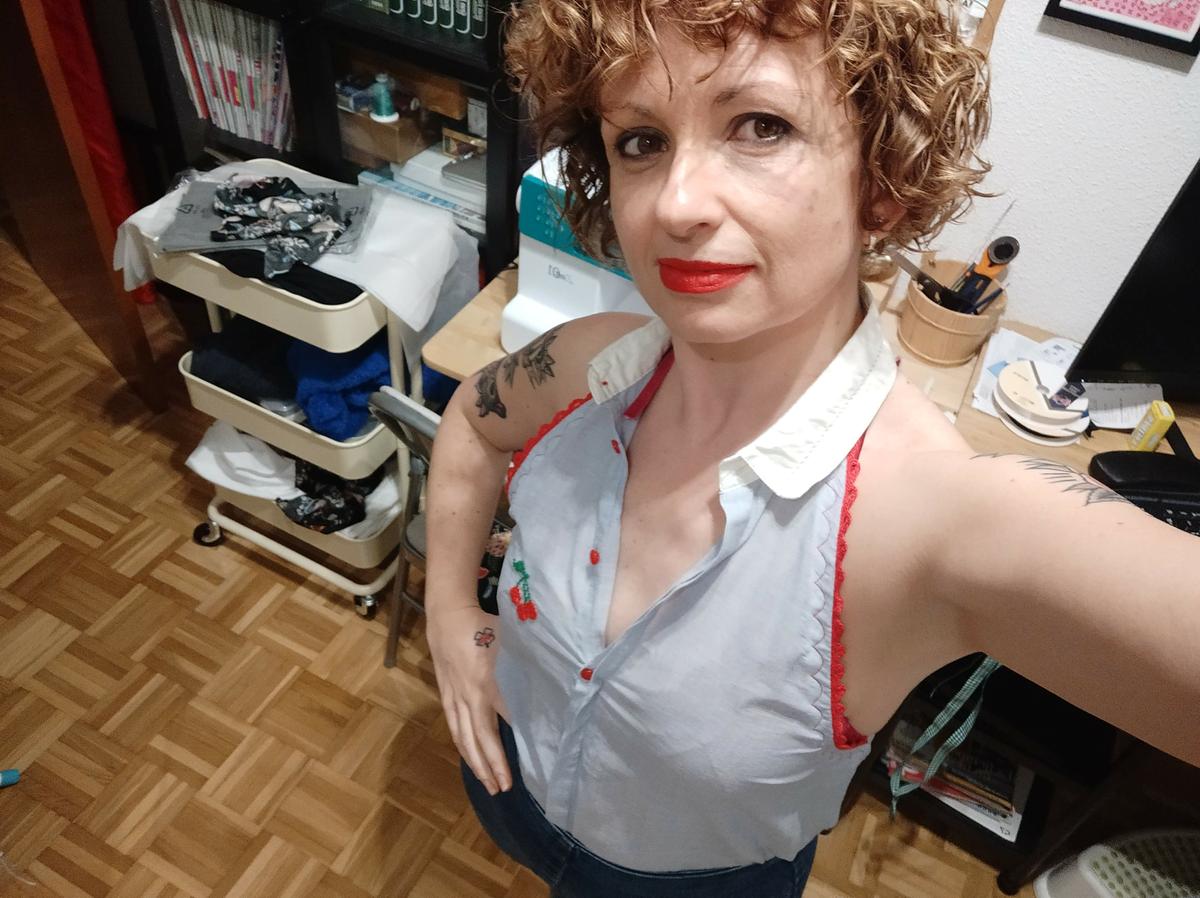 Encima me ha quedado una blusita de lo más vintage, con un aire pin up que no se puede aguantar ¡qué ganas de salir a bailar rock&roll que tengo, por favor!