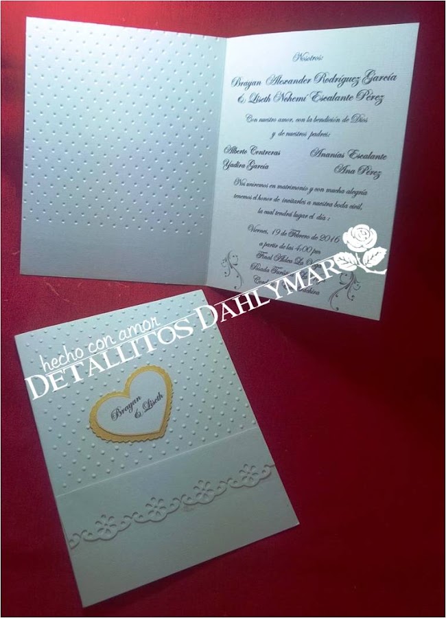 Esta semana entregamos estas invitaciones de boda civil, en las cuales la novia deseaba que fuesen totalmente blancas con un toque de dorado.. Y asi quedaron: