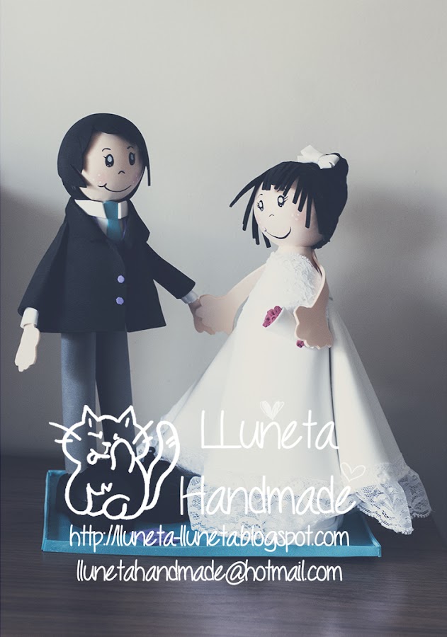 He de decir que es la primera vez que hago estos muñecos que están tan de moda, no sé porque pero de cierta forma me causaba respeto... y sobretodo dibujar la cara (soy así de boba, y eso que de siempre se me ha dado genial dibujar), y entre esos muñequitos otro detalle más...