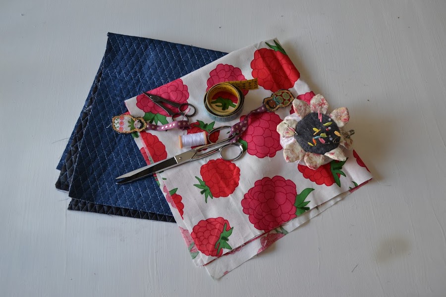 - Tela elegida, yo utilice esta de frambuesas, me pareció la mejor para este DIY.
