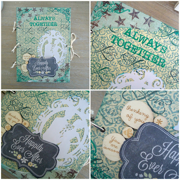 Papeles envejecidos, tintas, sellos cameo, detalles en madera, cartelería, sobres pero sobre todo infinito cariño...
