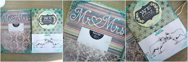 Así, y después de mucho pensar, se creó esta agenda para bodas que de peculiar no tiene nada, en tonos turquesas y malvas para mantener ese toque romántico, estrellas de mar para una boda playera, con unas perritas que más lindas no pueden ser en representación de las suyas y ¿un pato?