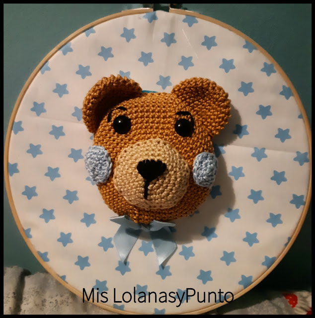 Lo que he hecho, es tejer a ganchillo, la mitad de la cabeza de un oso, he tejido su hocico, su orejas. Les he puesto sus mofletes, y los he hecho en colores clásicos y convencionales. Celeste para chico, y rosa para chica. Tú evidentemente, lo puedes hacer como quieras.