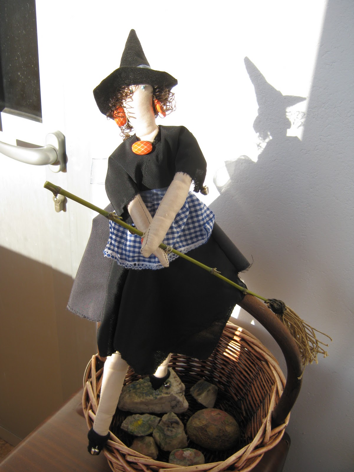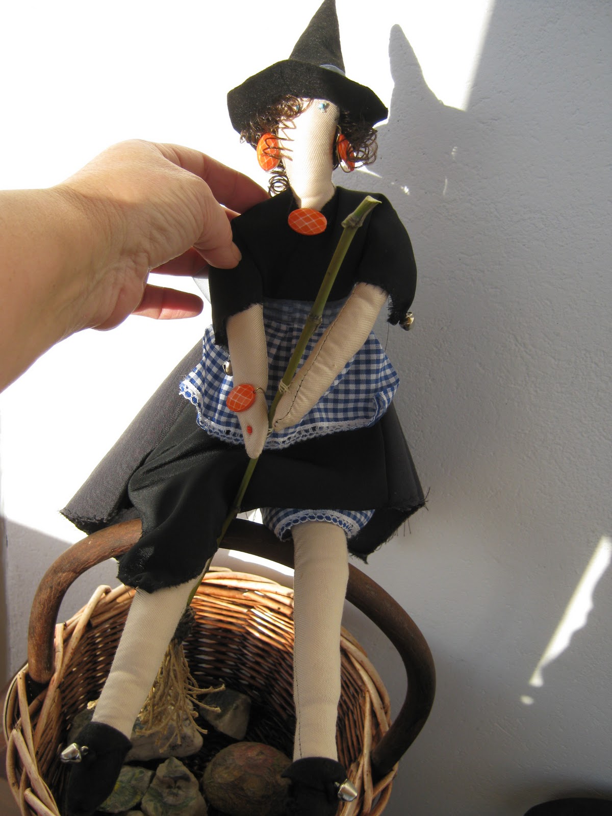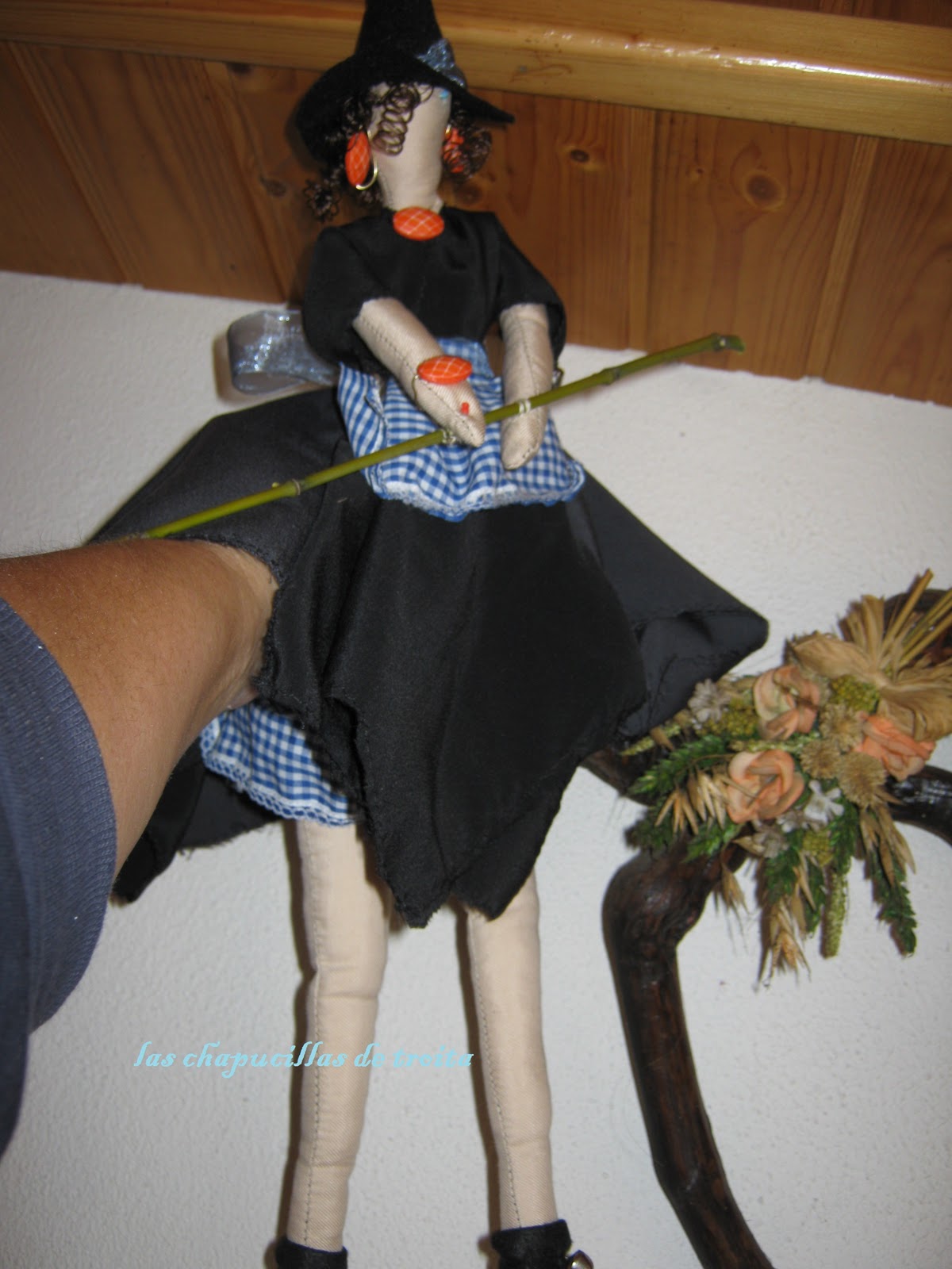 Como no sabía que regalarle por reyes y usando los patrones de una tilda , le hice un amago de bruja