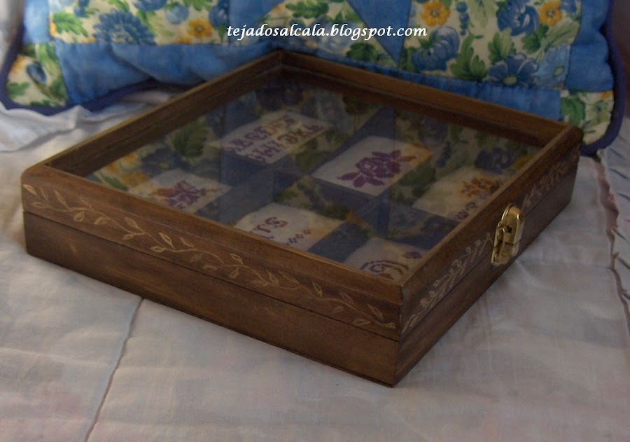 Mi último trabajo ha sido un camino de mesa con un pequeño tapete haciendo juego. La base son hexágonos en tonos azules y sobre éstos, centrados, otros hexágonos más pequeños en blanco. El acolch ...