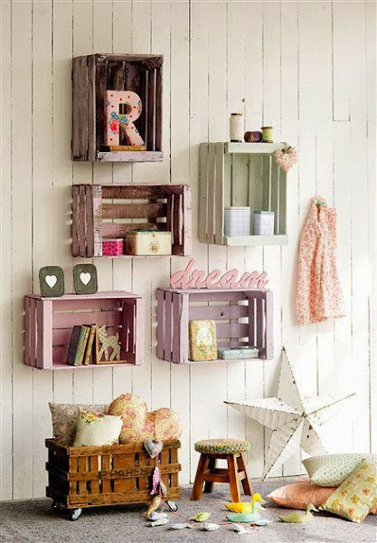 Ultimamente estoy obsesionada con el reciclaje y la doble utilidad de las cosas, concretamente se me han metido en la cabeza las cajas de madera, sí, sí, las de frutas y verduras que encontramos en los mercados y fruterías.