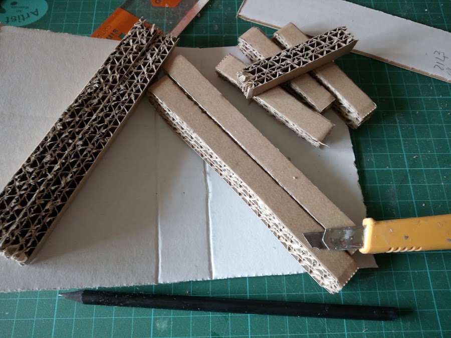 Todo el trabajo lo he realizado en cartón de distintos grosores, aprovechando restos que tenía guardados.