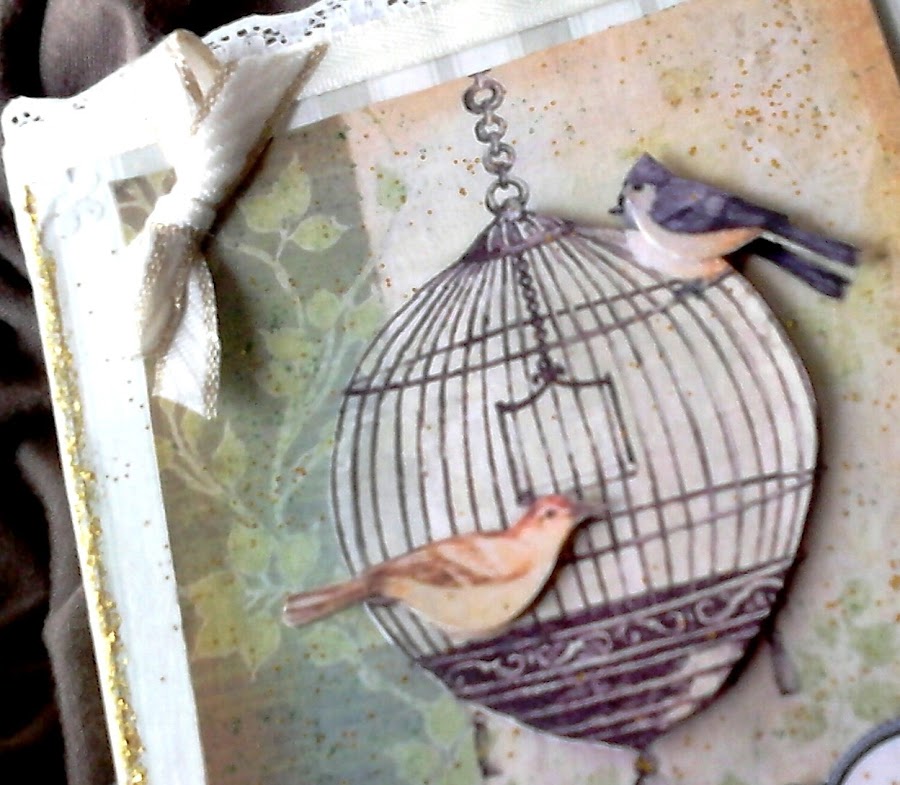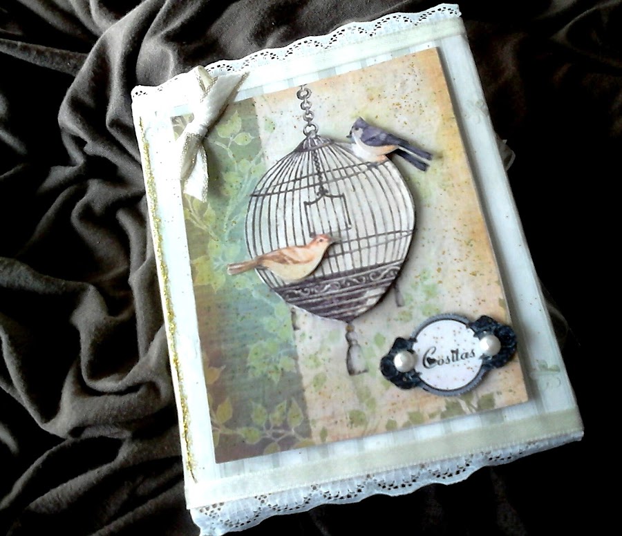 La parte de abajo de la cajita (el fondo) también lleva la misma imagen de la jaula y una dedicatoria porque todos mis trabajos son regalos, como siempre digo.