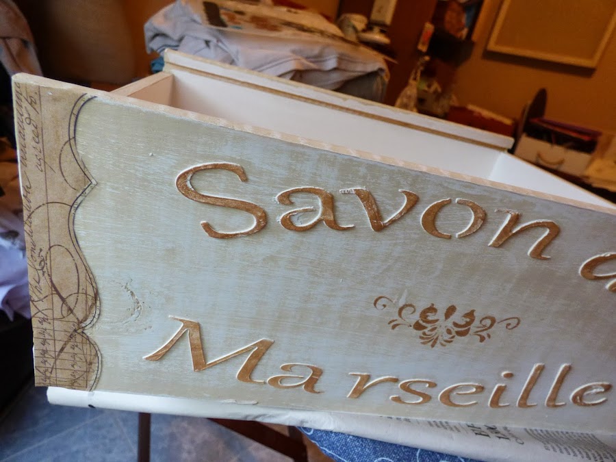 Así que me puse hace unos dias, a decorar otra caja....una de las del almacén aquel que os conté y que a diferencia de las demás, está un poco destartalada, como si estuviera descuadrada y la tapa no cierra bien......así que me la quedo para mí