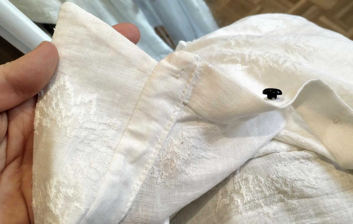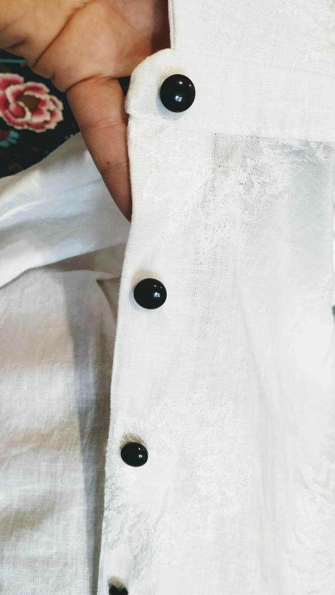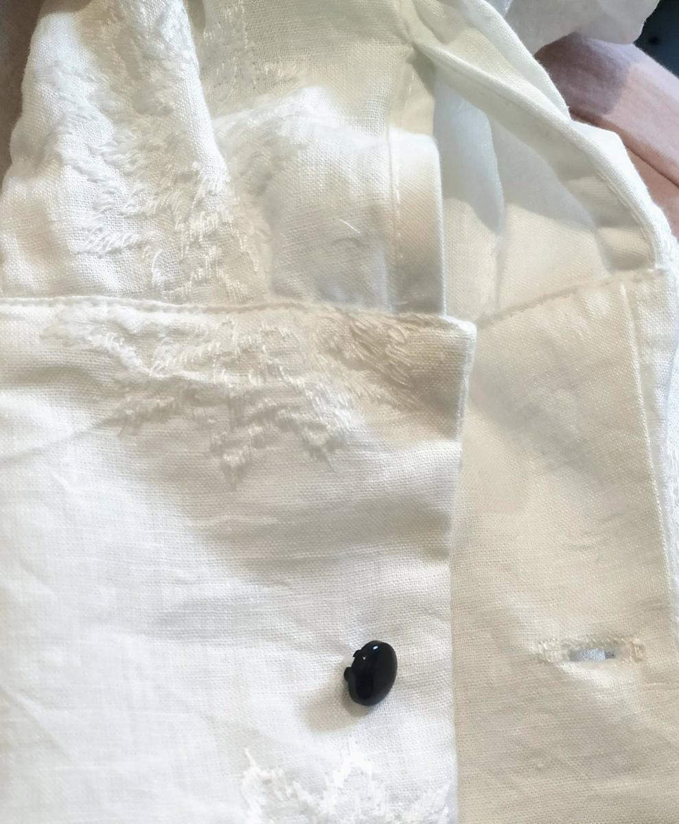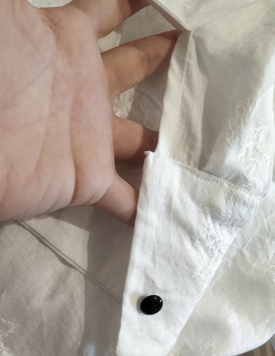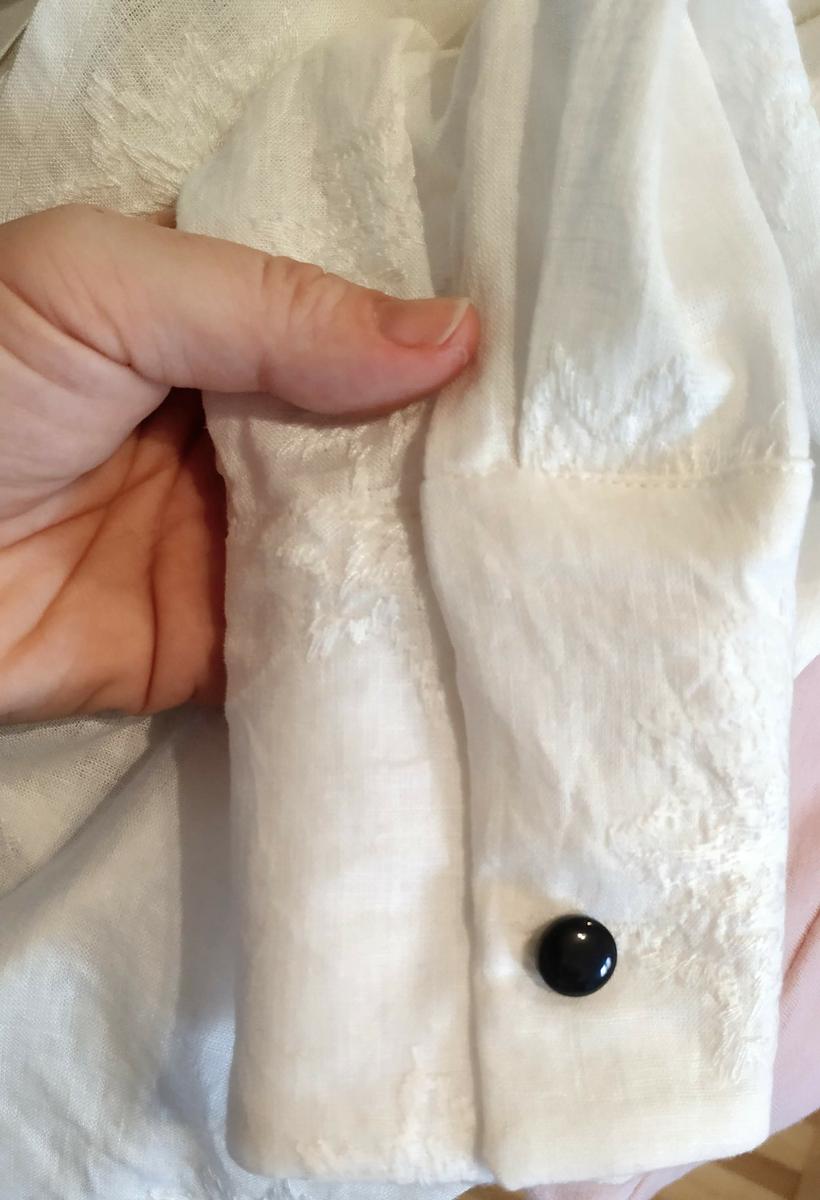 Este cambio me dio mucho juego también en el puño, ya que el botón en negro daba la sensación de que eran unos gemelos. Así que, en vez de poner la fila de botones que va en el patrón, puse uno solo ¿qué os parece el efecto?