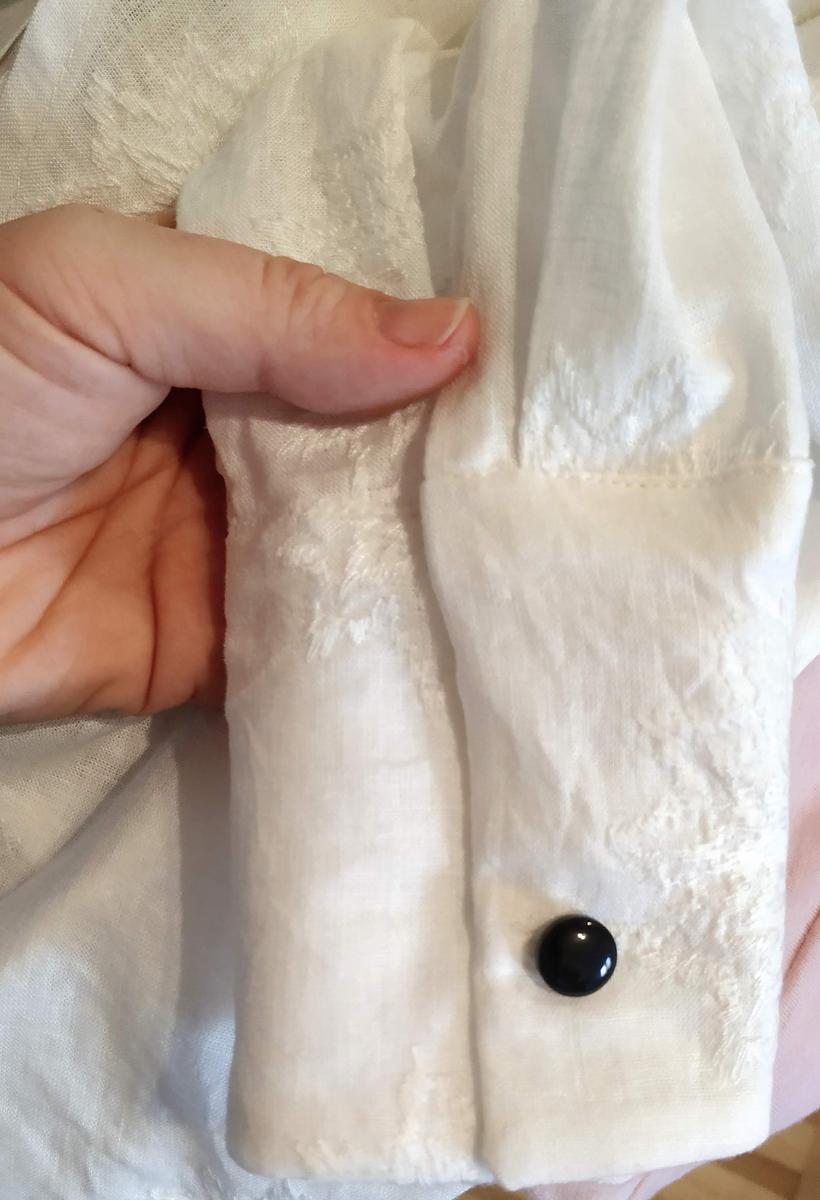 Este cambio me dio mucho juego también en el puño, ya que el botón en negro daba la sensación de que eran unos gemelos. Así que, en vez de poner la fila de botones que va en el patrón, puse uno solo ¿qué os parece el efecto?