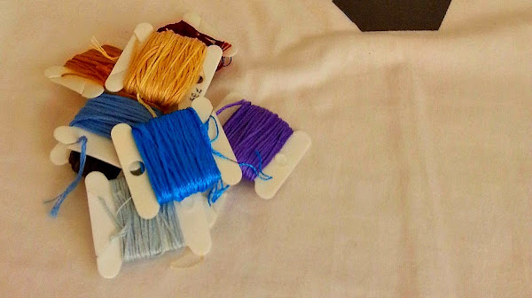 Una vez pegadas, sólo queda coser todos los cantos de las piezas con un festón. Yo utilizo hilo mouliné de los colores de las telas.