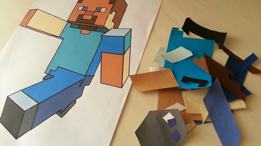 Este dibujo, como tiene efecto tridimensional, requiere muchas piezas de colores diferentes y hay muchas superposiciones combinadas, os aconsejo comenzar con un dibujo de dos dimensiones.