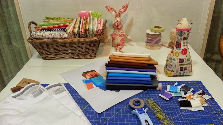 Una vez seleccionado el dibujo elegimos las telas y los hilos que vamos a utilizar en su confección. En esta ocasión todas las telas son lisas.