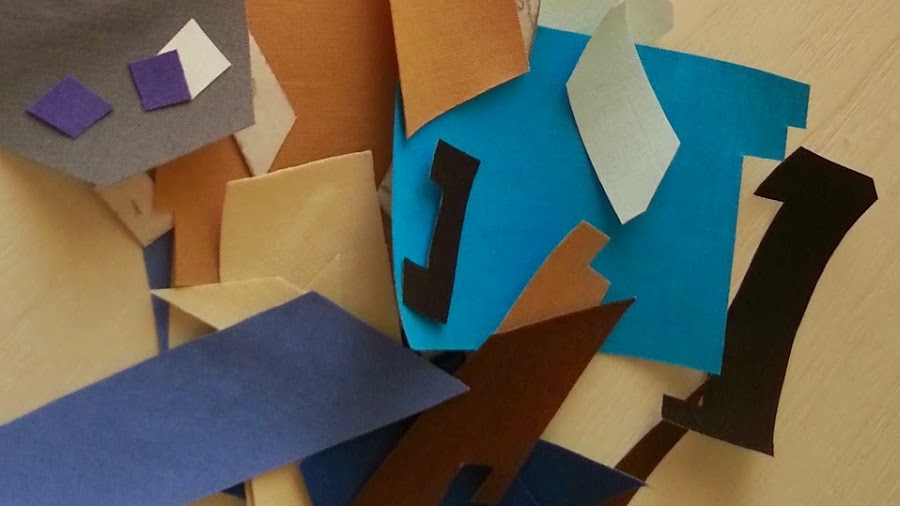 El dibujo hay que transferirlo a la tela. Aquí veis mi dibujo y las piezas de tela con el papel de pegar ya recortadas. Si no conocéis la técnica para transferir el dibujo a la tela recordad que en esta entrada os lo explico paso a paso y con imágenes.