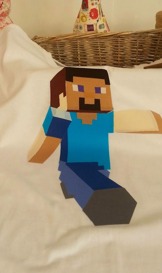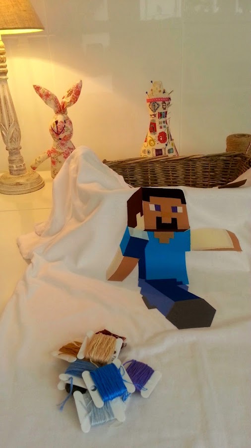 En la espalda de la camiseta apliqué el nombre que mi sobrino utiliza para jugar a Minecraft.