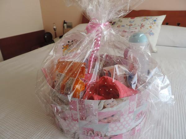 Me encanta preparar canastillas y cestitas de regalo. En esta ocasión le he puesto en la canastilla, chupetes, biberón, toallitas, baberos, colonia, gel, crema, bodys, pijamita, camisetas, gorrito, dos mallas de bebé, calcetines etc, todo ello dentro de una caja de cartón con dibujitos de bebes en rosa, muy chuli. Espero que a los papis les guste mucho¡¡.