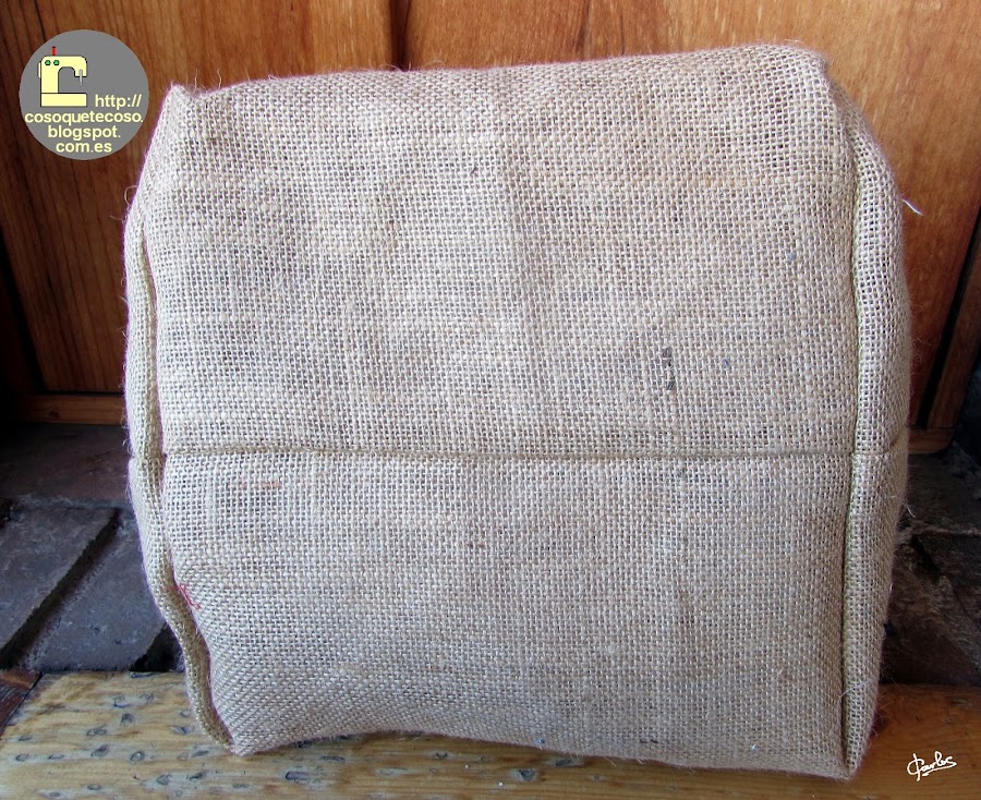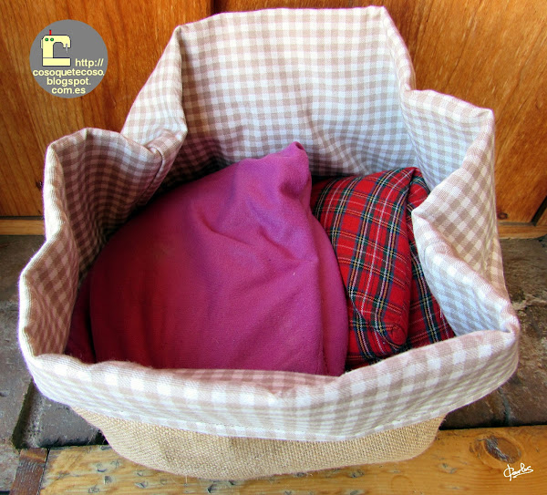 Probé la cesta que tengo para las bolsas, y me dije: pues igual pero más alta porque tengo tres cojines al uso y quiero que estén agrigaditos.
