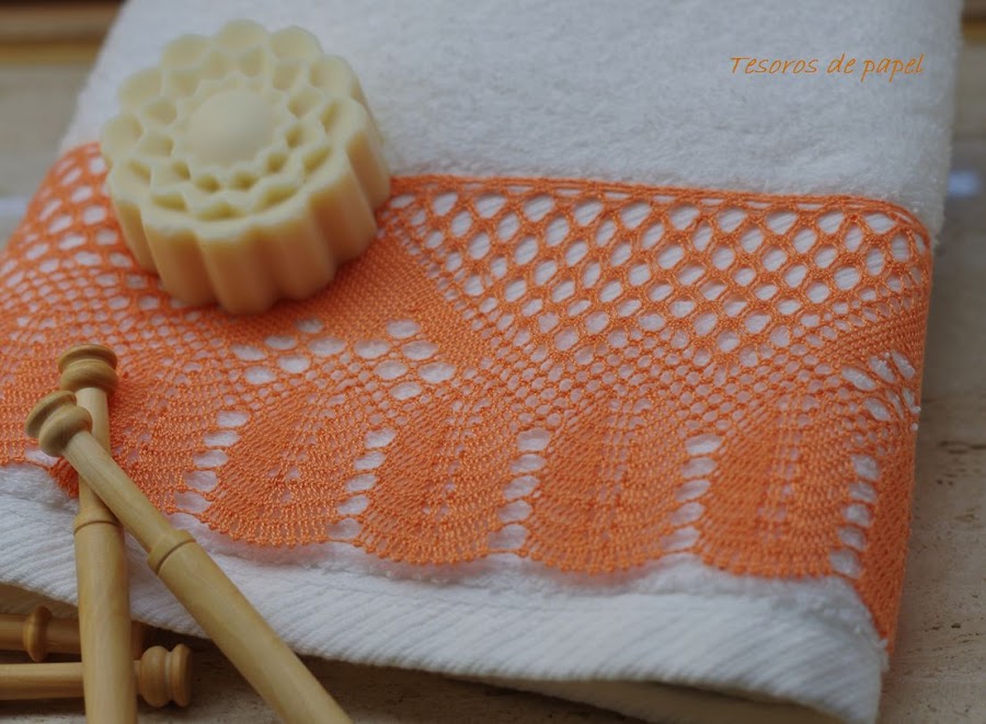 Y mira por donde, he encontrado esta puntilla, que ya hice hace tiempo y que había colocado en una toalla blanca de algodón...¿A que es preciosa?
