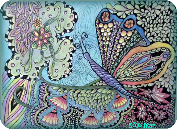 Y ...si... también os mostraré el reto del pasado mes de Junio del grupo zentangle ( pero sin largar el rollo...)