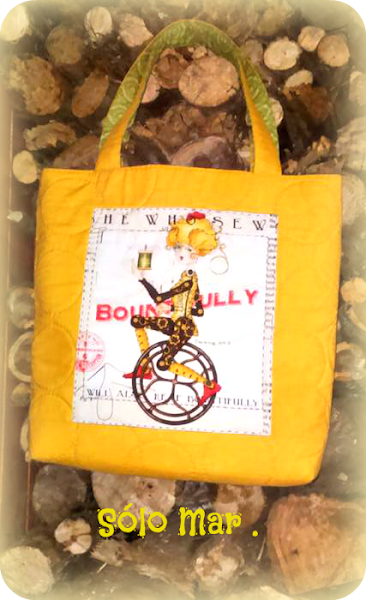 Ha sido laborioso porque son muy muy cabezona y me he empeñado en realizarla totalmente a mano , no he puesto la máquina de coser ni para las costuras laterales . ni para las asas del bolso , en fin tonterías de la edad !!!