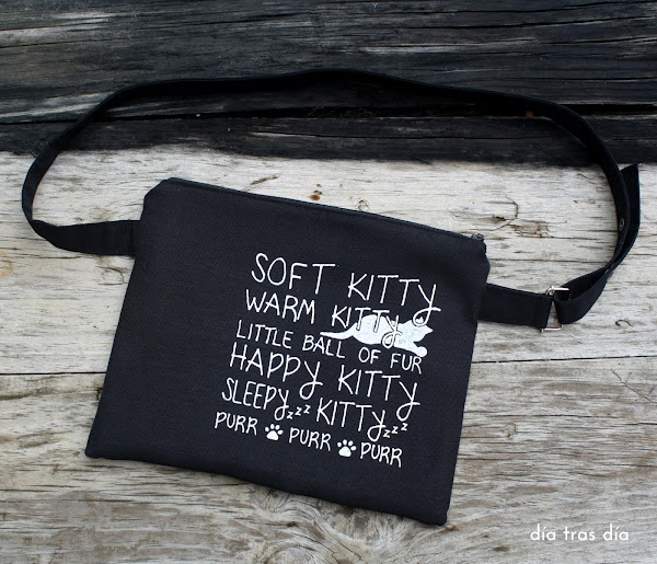 Como se que a mi sobrina le gusta la serie “Big Bang Theory”, aproveché para decorar la riñonera con la letra de una canción que canta el protagonista principal de la serie y que habla de un “dulce gatito”.