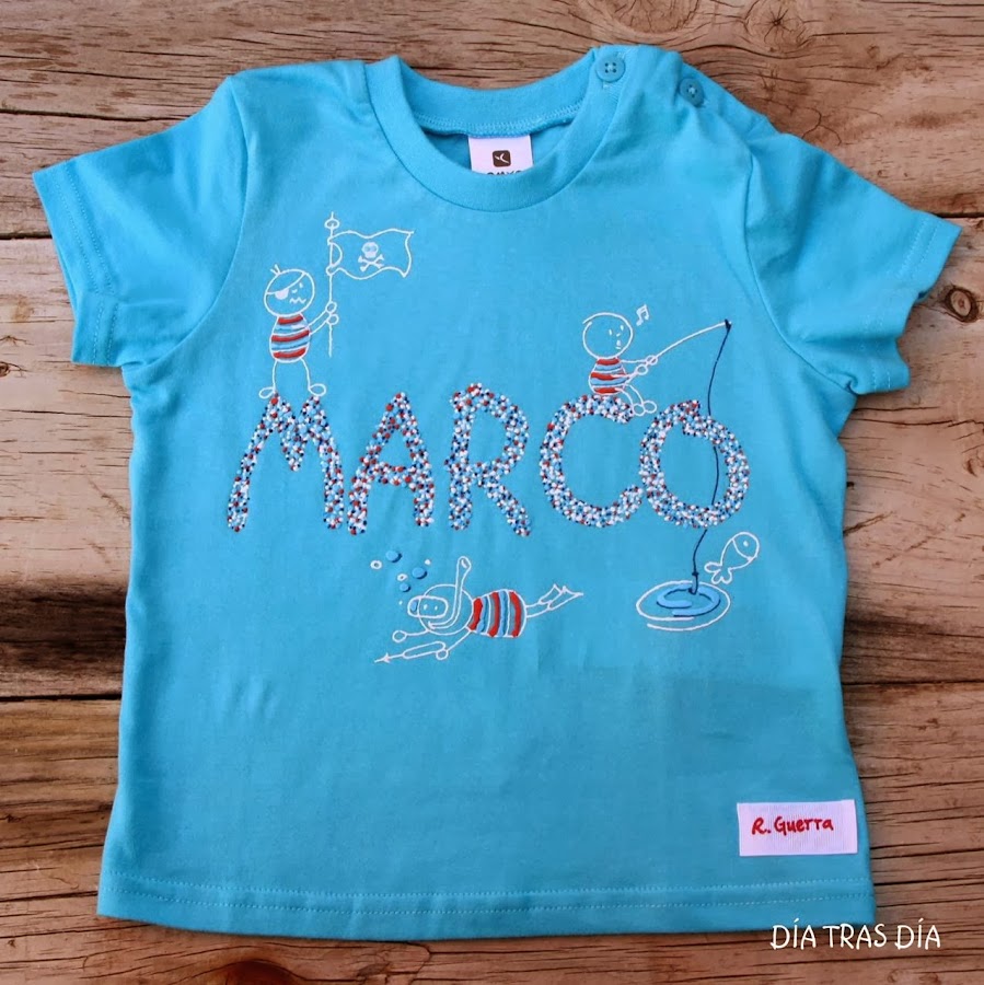 Si la de Marc fue sobre camiseta de color blanco, en esta ocasión la hemos hecho en un color igualmente marinero, en turquesa. Y así es como ha quedado:
