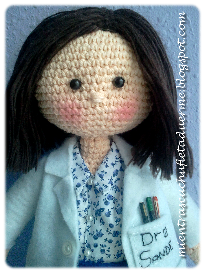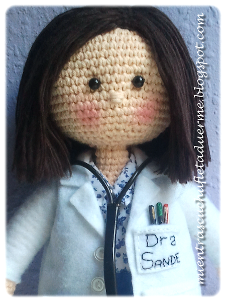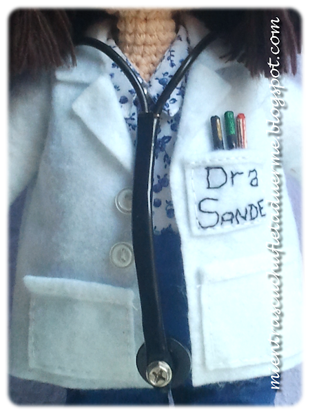 La ropa esta vez la hice con fieltro y tela, para variar. Y los botones de la camisa con alfileres.