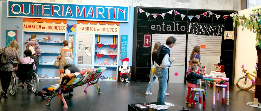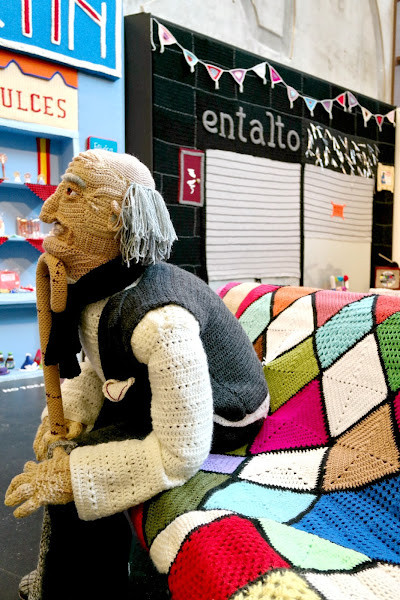 Plasman con total mimetismo una parte del centro de Zaragoza muy significativa: un tramo de la Calle Mayor con la tienda Quiteria y el bar Entalto. Os animo a los que estáis cerca, que la visitéis...ya que es un proyecto lleno de buenos propósitos, recuerdos, añoranzas y todo un homenaje a lo tradicional. La guerra del ganchillo está en la calle!!